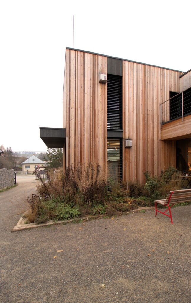 Objekt sídla formy TCH space s.r.o. špecializujúcej sa na tepelené čerpadlá rekuperáciu a fotovoltiku je postavený z CLT systému. Priestor firmy s kanceláriami, skladmi a showroomom je na prvom nadzemnom podlaží. Druhé nadzemné podlažie obsahuje bytovú jednotku so strešnou terasou a zelenou strechou zameranou na pestovanie v záhonoch. Fasáda je kompletne prevetrávaná ako aj celá dvojplášťová strecha nad 2.np. Objekt je v interiéri kompletne s priznaným CLT. Je vykurovaný a chladený tepelným čerpadlom, má zabezpečenú rekuperáciu a strešnú fotovoltickú elektráreň.