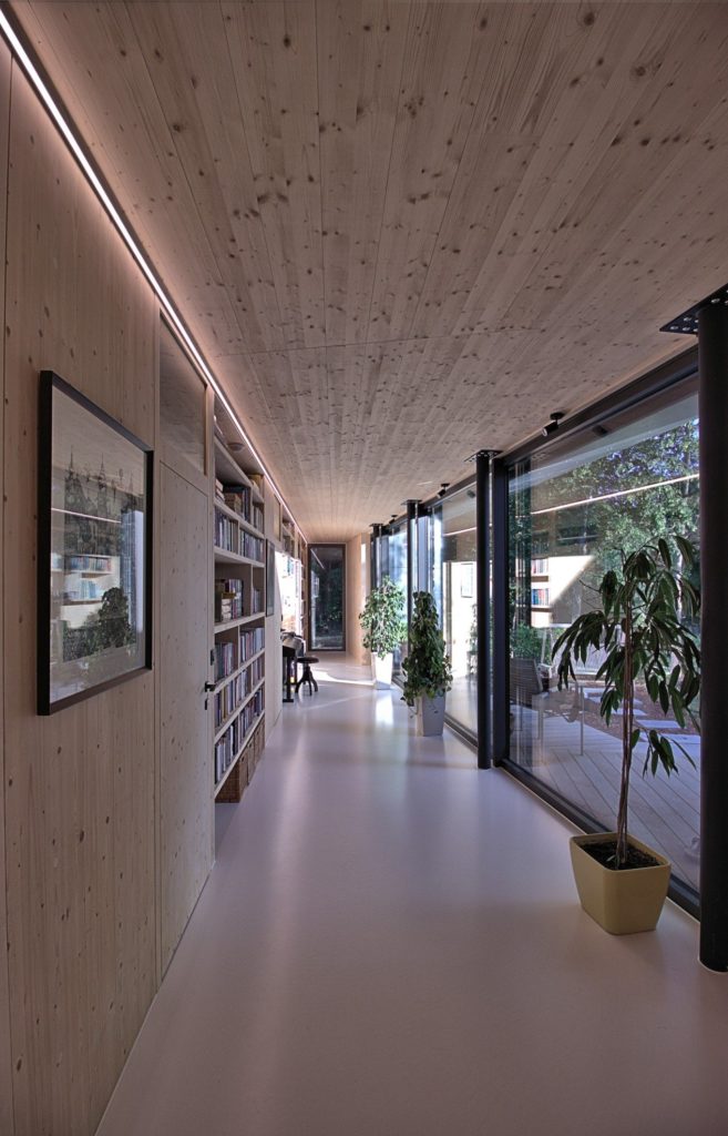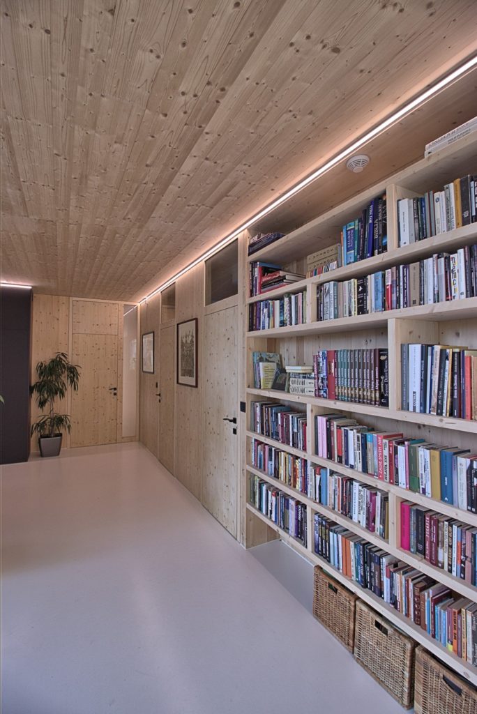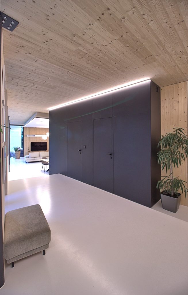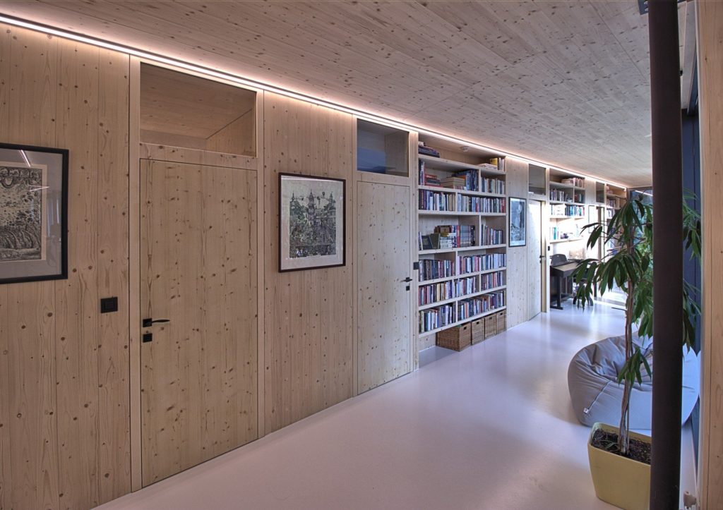 Návrh interiéru sa snažil v značnej miere využiť použitý CLT systém v stavbe drevodomu s dôrazom na útulnú a teplú atmosféru a s využitím nábytku z masívu resp. dyhy.